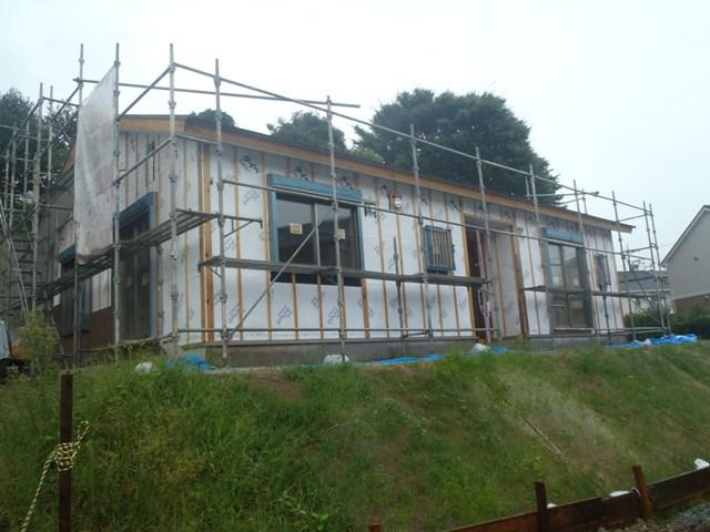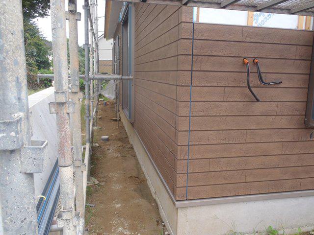・外壁サイディング北面より貼り進めています。週中より天候が