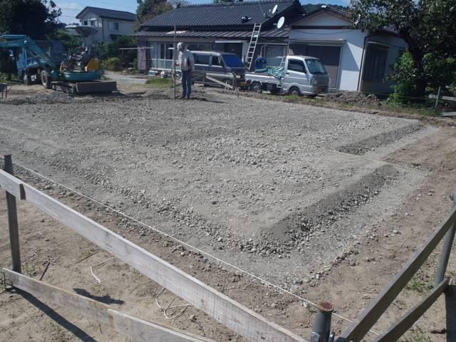 間隔など)を受けベースコンクリートを打ち、立ち上がり部型枠組み