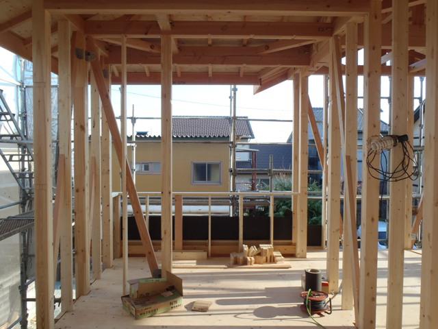 ☆先週の工事☆ 木工事(筋カイ・間柱入れ、構造金物取付、サッシ開口造作) ☆今週の予定工事☆ 木工事(サッシ開口造作、サッシ取付、ベランダ下地 造作、他)