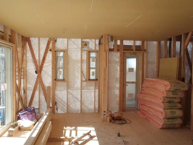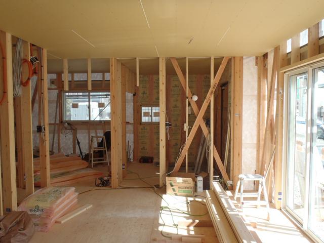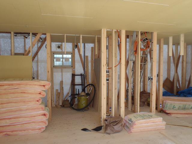 ☆先週の工事☆ 木工事(天井下地組み及びボード貼り、外壁下地材打ち、 軒天下地組み、他) 保証機構JIO外装下地検査 ☆今週の予定工事☆ 木工事(軒天下地組み及び軒天ボード貼り、壁断熱材入れ 他)