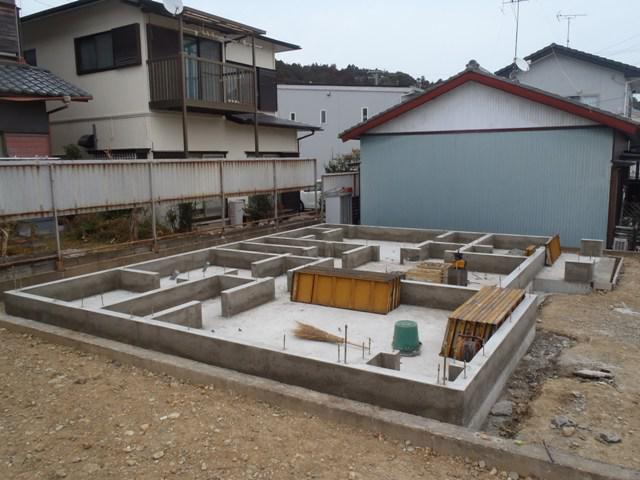 ☆先週の工事☆ 基礎工事(立ち上がり部型枠組み、アンカーボルト類設置 コンクリート打設・天端レベラー、型枠解体、他) ☆今週の予定工事☆ 基礎工事(型枠解体、埋め戻し整地、タイル下地 コンクリート他) 外部先行配管