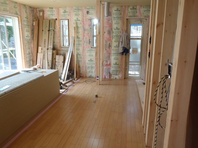 ☆先週の工事☆ 木工事(床フローリング貼り、壁下地合板・プラスターボード 貼り、他) 外壁工事(コーキング打ち、他) 軒天塗装 ☆今週の予定工事☆ 木工事(ドア開口枠取付、壁下地 合板・プラスターボード 貼り、階段造作、他) 板金工事(破風鼻隠し板金・樋掛け、他)