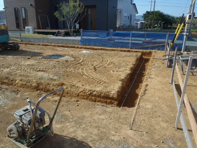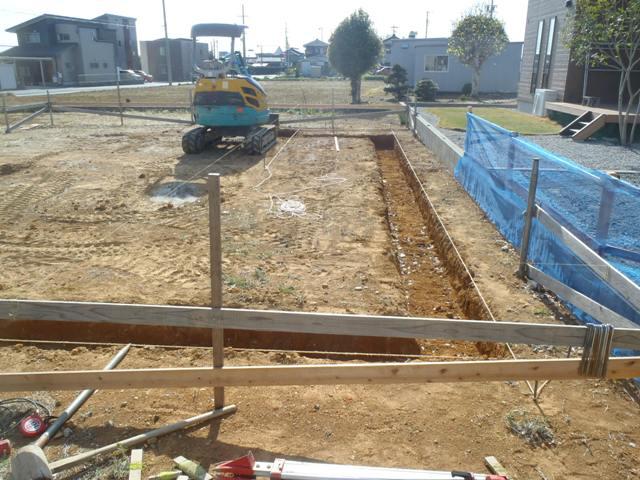 地鎮祭おめでとうございます! 都市計画法(大規模既存集落申請43条許可・60条適合)の 申請がおり、確認申請を行い基礎工事に着手しました。 建物基準位置・高さ出し(丁張)を行い、掘削作業へと 進めています。