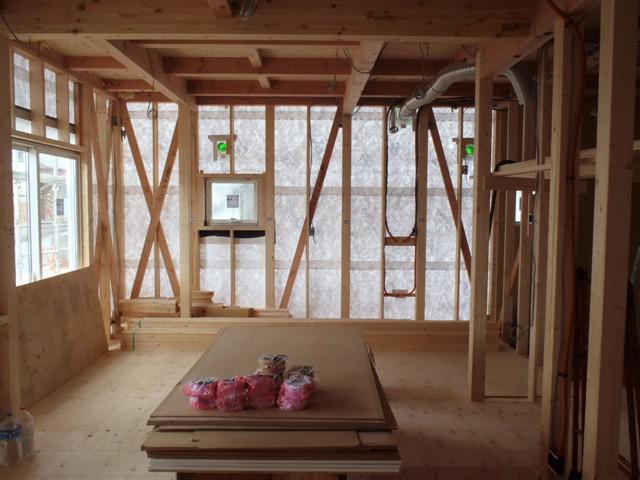 ☆先週の工事☆ 木工事(軒天ケイカル版貼り、2階天井ボード貼り、 壁断熱材入れ、床フローリング貼り、他) 外壁工事(外壁スターター金具、コーナー役物取付、他) ユニットバス据付 ☆今週の予定工事☆ 木工事(1階天井下地組み・天井ボード貼り、床フローロング 貼り、他) 外壁工事(平板サイディング貼り、他)