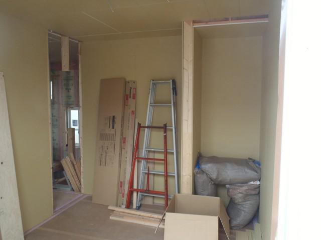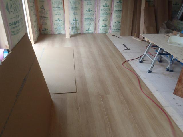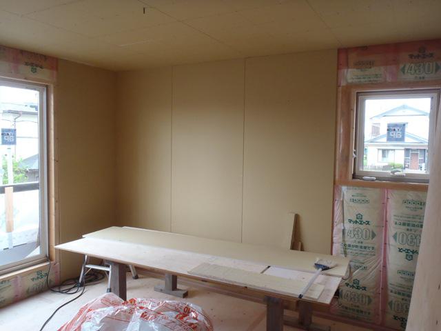 ★先週の工事★ 木工事(1階壁断熱材入れ、1階床フローリング貼り、 2階壁ボード貼り、他) 外壁工事(平板サイディング貼り、他) ★今週の予定工事★ 木工事(2階壁ボード貼り、窓枠組立・取付、 ドア開口枠組立、他) 外壁工事(平板サイディング貼り、他)