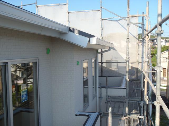 ☆先週の工事☆ 木工事(壁ボード貼り、幅木・廻し縁取付、建具吊り込み、 可動棚、他) 板金工事(破風・鼻隠し板金、樋掛け) ☆今週の予定工事☆ 内装工事(クロス下地、クロスパテ、クロス貼り、他) 外部換気フード取付、TVアンテナ取付、電力引込口 金具取付 外部足場解体 外部給排水工事