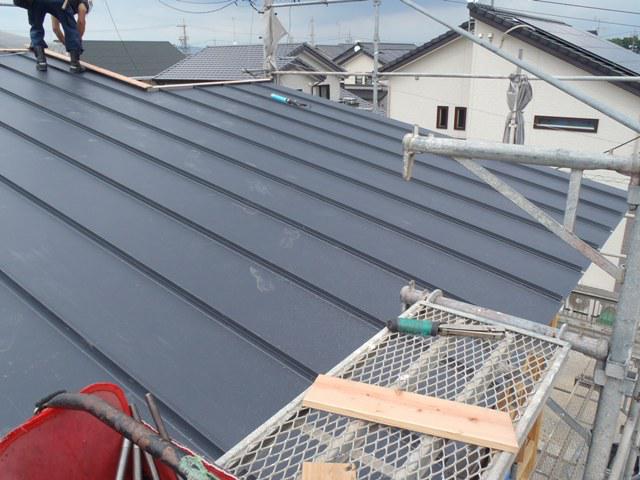 屋根工事(捨て水切り、ガルバ鋼板葺き、役物板金)