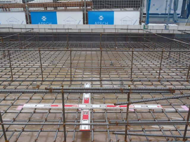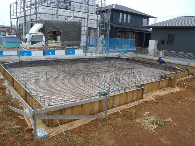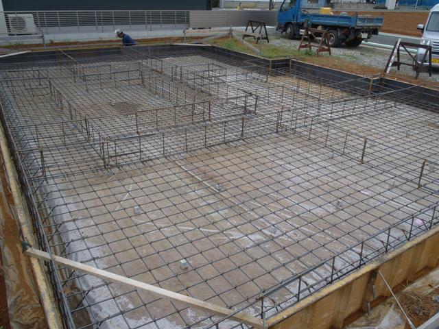 ・基礎工事、鉄筋加工・鉄筋組をし保証機構JIOによる 配筋検査(鉄筋組み状況型枠と鉄筋との間隔等確認)を受け ベースコンクリート打ちとなります。 ・来週より立上り部型枠組み、アンカーボルト類設置し コンクリート打ちを行います。