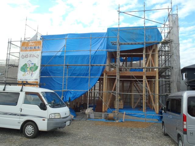 ☆先週の工事☆ 上棟 木工事(筋カイ・間柱入れ、構造金物取付、他) 屋根下地材葺き ☆今週の予定工事☆ 木工事(サッシ開口造作、ベランダ下地、他)
