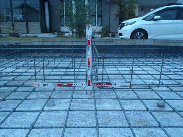 ・基礎工事、基礎骨組となる鉄筋組を終え保証機構による 配筋検査を受けベースコンクリート打設、立ち上がり型枠 墨出しベース型枠解体、立ち上がり型枠組みへと進めて います。型枠組み後、アンカーボルト類設置しましたら 立ち上がり部コンクリート打設を行います。