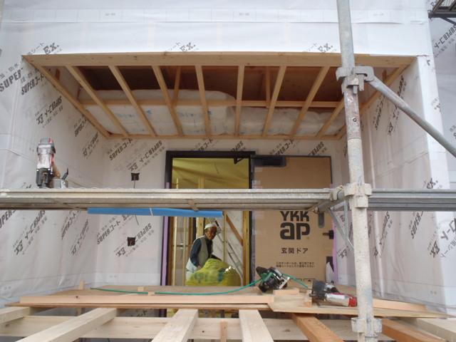☆先週の工事☆ 木工事(外壁下地材打ち、1階床フローリング貼り、 壁断熱材入れ、他) ユニットバス据付 ☆今週の予定工事☆ 木工事(外壁下地材打ち、1階床フローリング貼り、 壁断熱材入れ、壁プラスターボード貼り、他)