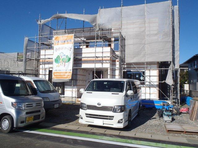 役物取付し平板サイディング貼り進めています。