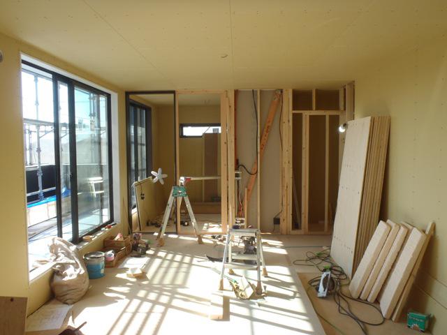 木工事(ドア枠取付、壁合板・プラスターボード貼り、
