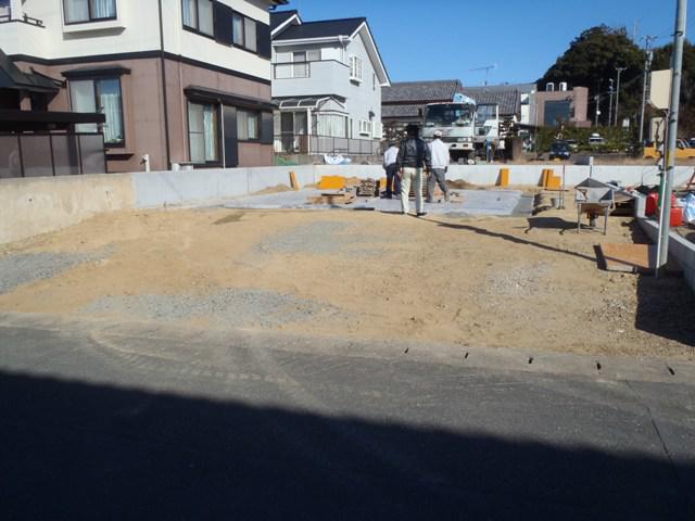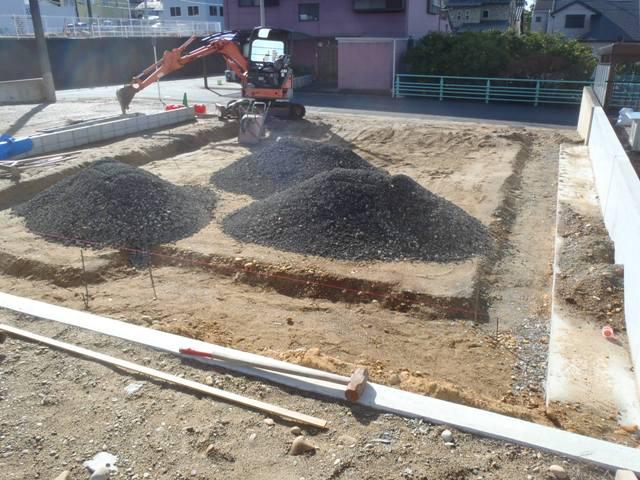 ・基礎工事に着手し、掘削、砕石地業、土間シート敷き、捨て コンクリート打ち、型枠組みへと進んでいます。 鉄筋加工・鉄筋組を順次進めます。 基礎コンクリートの骨組鉄筋を組み終えましたら保証機構JIO (第三者検査機構)による配筋検査を受け給水管配管、ベース コンクリート打設予定しています。