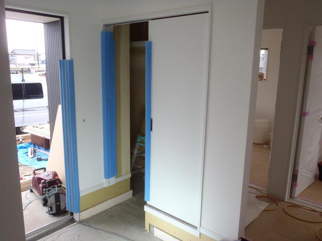 ・内部内装仕上げ、クロス貼りを終えクッションシート貼り、