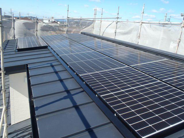 ・外部工事、太陽光パネル設置、パネル結線引込、外部点検し