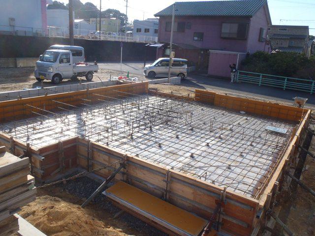 ★先週の工事★ 基礎工事(保証機構JIO配筋検査、外周部内側型枠組み、 アンカーボルト類設置、他) 配筋検査 ★今週の予定工事★ 基礎工事(ベース立ち上がり部コンクリート打ち、 内部布基礎部型枠組み、コンクリート養生、他)