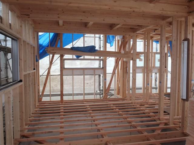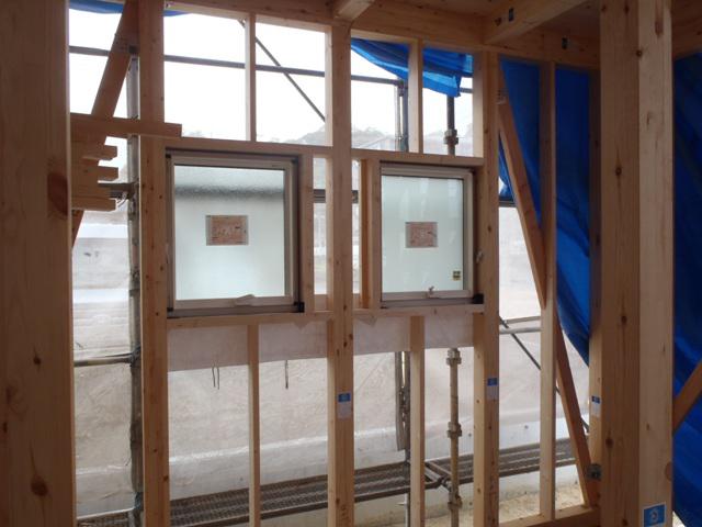 木工事(防腐防蟻処理、中間検査準備、サッシ取付、2階天井