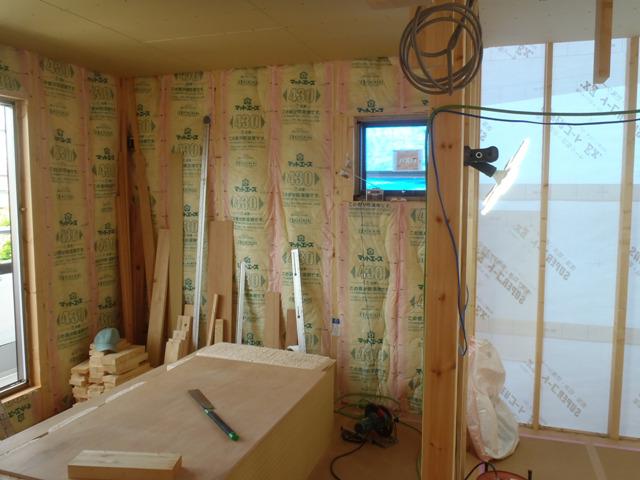 ★今週の予定工事★ 木工事(床フローリング貼り、壁断熱材入れ、窓枠取付、 壁プラスターボード貼り、他) 外壁工事(サイディング貼り、他)