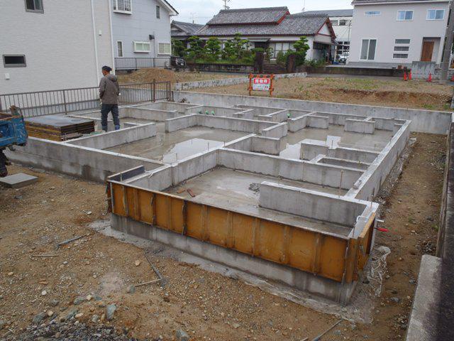 タイル下地コンクリート打ち、基礎周り埋め戻し基礎工事