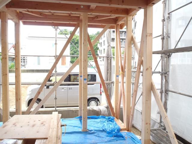 ★先週の工事★ 木工事(筋違・間柱入れ、構造金物取付、ベランダ下地組み 他) 屋根工事(下地板金) ★今週の予定工事★ 木工事(ベランダ防水下地、窓開口造作、他) 屋根工事(屋根材荷揚げ、平板葺き、他)