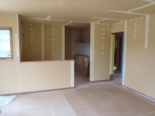 ・内部木工事、納材待ちの幅木材・建具本体を残し一時現場を 離れます。木工事完了しています部屋より内装仕上げ工事へ 入っていきます。外部浄化槽設置し外部汚水排水、雨水・ 給水配管埋設を行います。