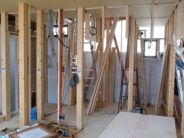 ・内部木工事、壁断熱材入れ、床フローリング貼りへと進んで