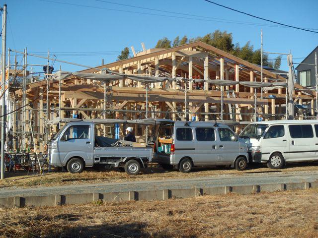 ★先週の工事★ 上棟 屋根下地防水材葺き 木工事(筋違い・間柱入れ 構造金物取付、他) ★今週の予定工事★ 木工事(間柱入れ、構造金物取付、床断熱材入れ、他) 屋根材荷揚げ、屋根材葺き 防腐防蟻処理 中間検査