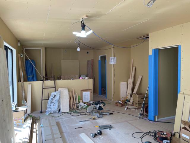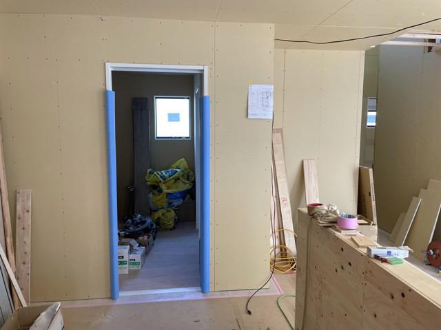 木工事(プラスターボード貼り、ドア開口枠組立・取付、