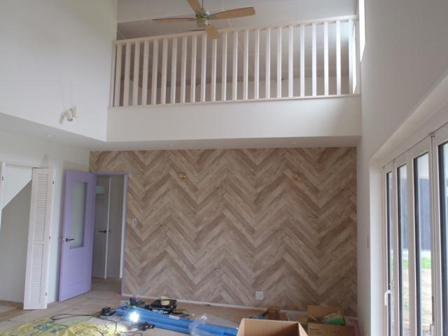 ・内部仕上げ工事、クロス貼り・クッションシート貼りを