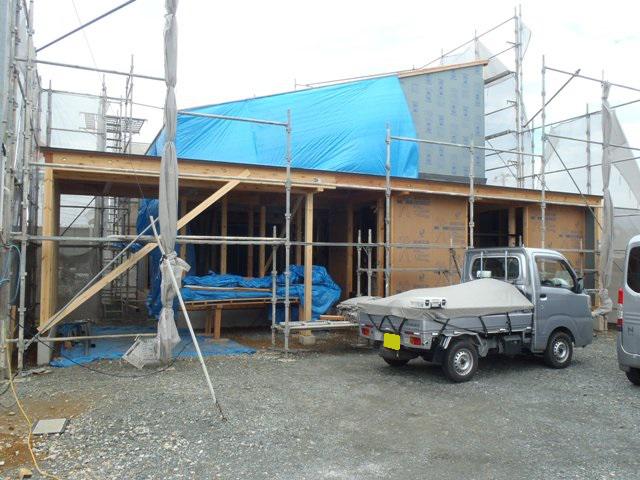 窓サッシ造作と行っています。週中より晴れ間となり、屋根