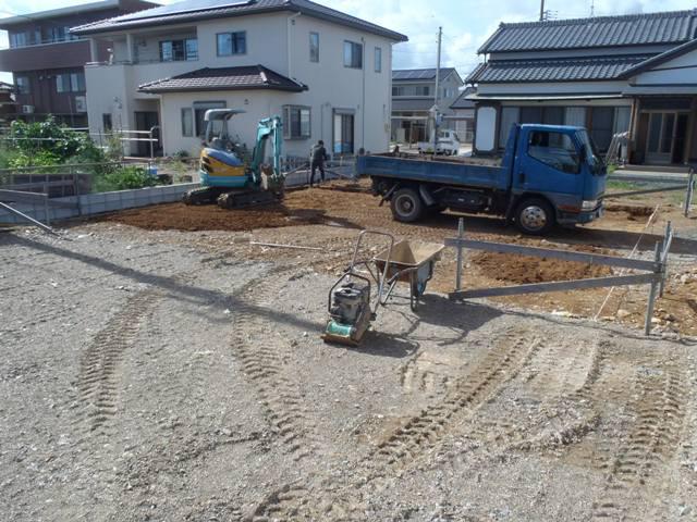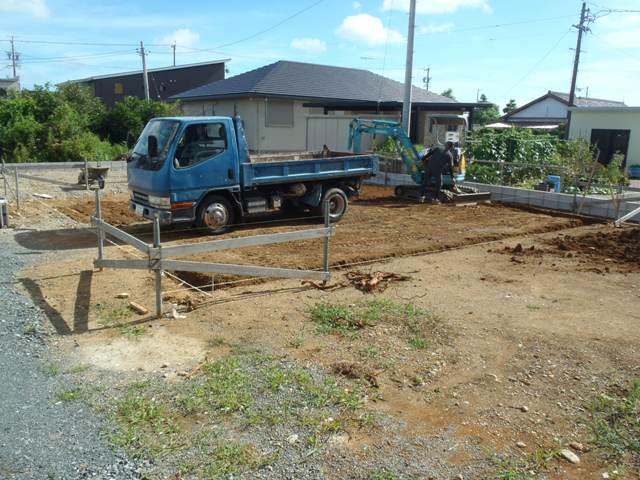 ★先週の工事★ 基礎工事(丁張、掘削、砕石地業、土間シート敷き、他) ★今週の予定工事★ 基礎工事(ベース型枠組み、鉄筋加工・鉄筋組み、他)