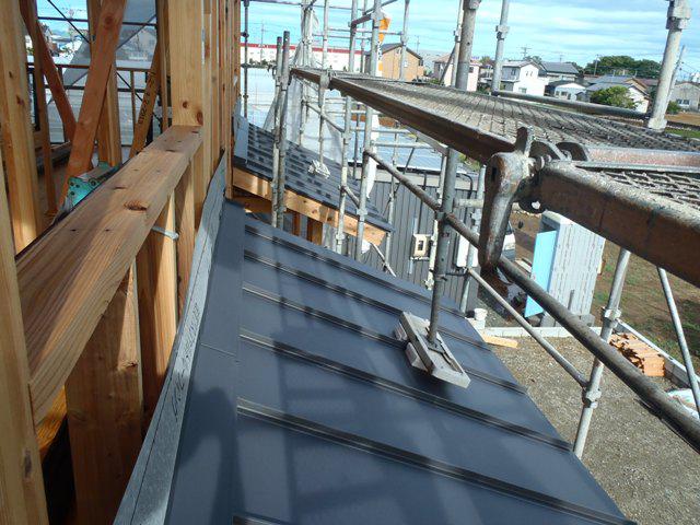 ★先週の工事★ 木工事(筋違い、間柱入れ、構造金物取付、窓サッシ開口 造作、サッシ取付、他) 外部足場、屋根上足場 屋根工事(下屋根GL鋼板葺き、 役物部材取付) ★今週の予定工事★ 木工事(構造金物取付、窓サッシ開口造作、サッシ取付 1階床下地造作、他)