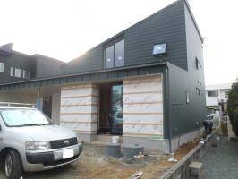 ・外部工事、外壁ジョリパット下地処理を行い上塗りへと