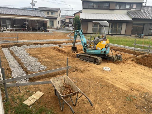 ★先週の工事★ 基礎工事(丁張、掘削、砕石地業、土間シート敷き、他) ★今週の予定工事★ 基礎工事(ベース型枠組み、鉄筋加工、鉄筋組み、他)