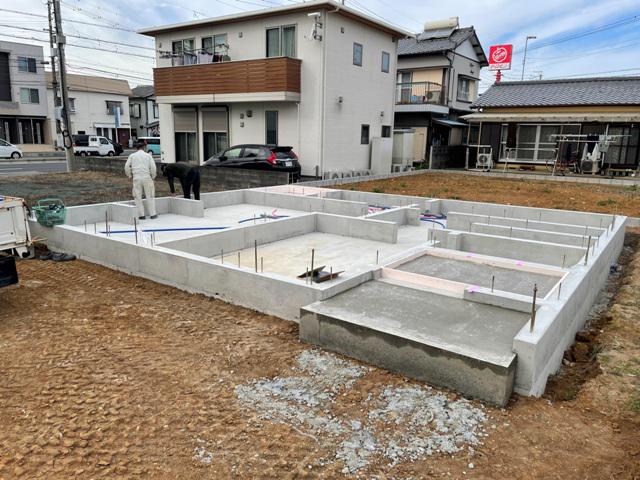 ★先週の工事★ 基礎工事(立上型枠解体、埋め戻し整地、玄関・ ポーチタイル下地コンクリート、他) 外部・内部排水・雨水先行配管 土台・床下地木材搬入 ★今週の予定工事★ 上棟準備、土台据え、床下地組み、1階構造材・下地木材 搬入 外部足場組み
