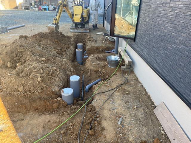 ・外部給排水埋設、エコキュート配管・ベースコンクリート