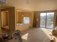 ・エコキュートベースコンクリート打ち終えました、据付は内部器具付けと 合わせて設置予定です。 ・内部木工事、和室化粧木部、建具枠設置、幅木取付と行い カウンター及び追加笠木、棚類納材待ちとなっています。 ・内部塗装、スイッチ・コンセント類ボード開口を行い内装工事への 準備進めています。