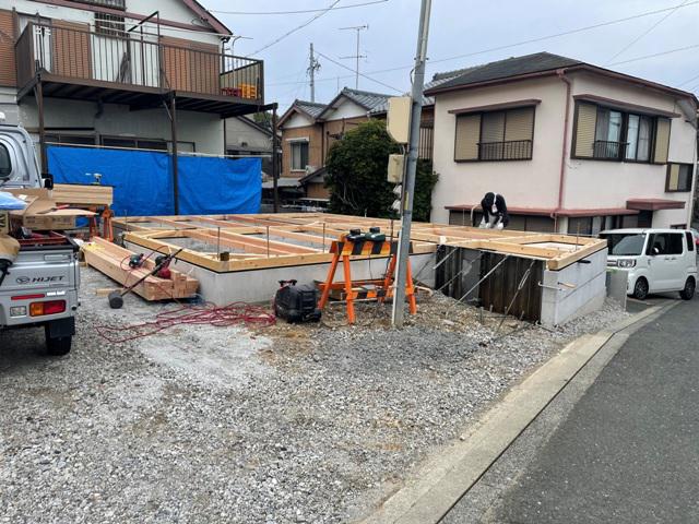 ★土台・1階床下地木材搬入、土台据え、床下地組み、 上棟準備 先行足場組み ★今週の予定工事★ 上棟 屋根防水シート葺き 木工事(筋カイ・間柱入れ、構造金物取付、他)