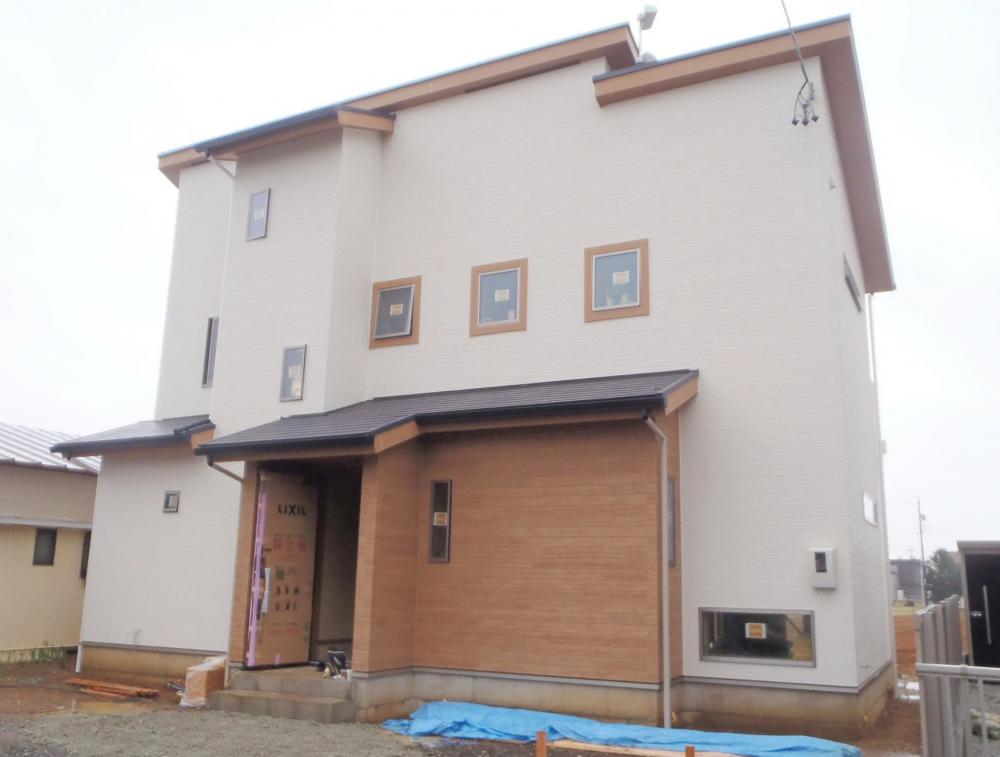 ナチュラルな色合いの外壁とお洒落な窓があるお家です。 一つ一つにご夫婦のこだわりがたくさん詰まっています。 ZEH仕様で家庭内で消費するエネルギーを出来るだけ減らし 今まで以上に少ない太陽光パネルでより効率よく快適に生活できます。