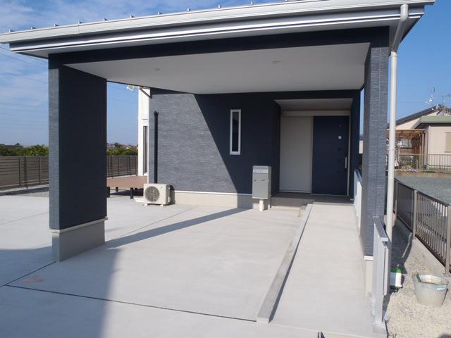 2019.12.23完成(ZEH) 全体的にブルーの色を使いまとまり のある内装に仕上がりました。 駐車場スペースにも屋根があるので 雨の日でも濡れずに済みます♪