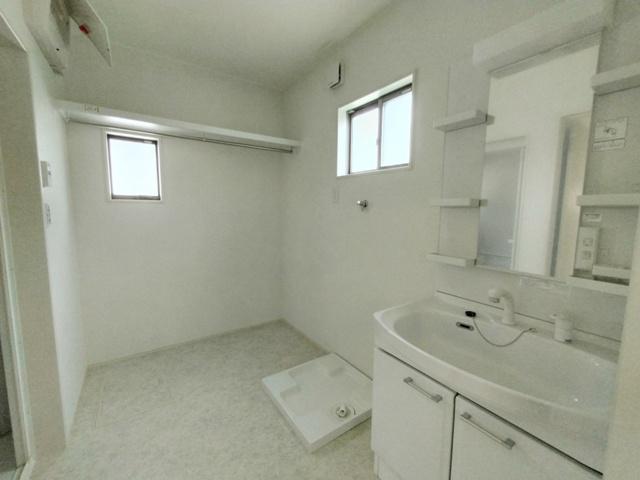 洗面所には、ハンガーパイプを設けて