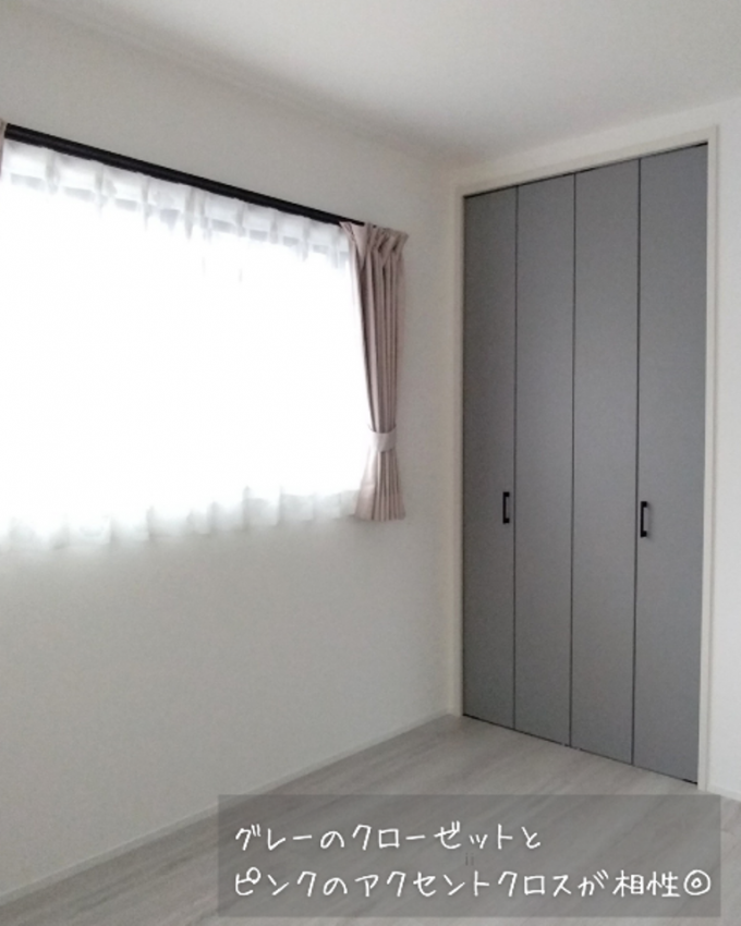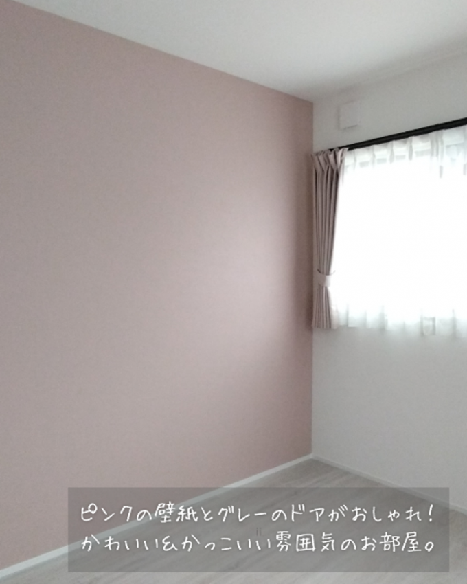 子供部屋は、ピンクとグレーを基調に