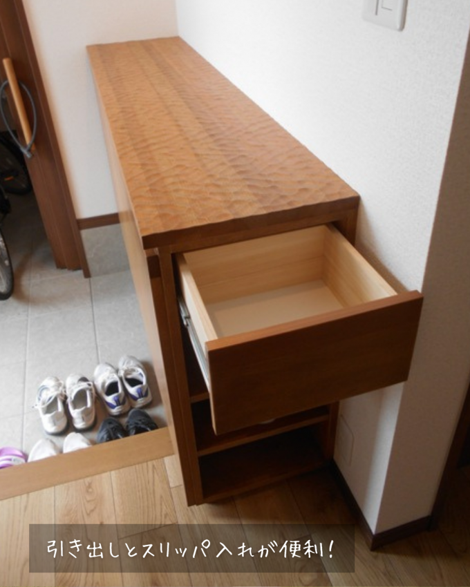 使用。引き出しやスリッパ収納も造り